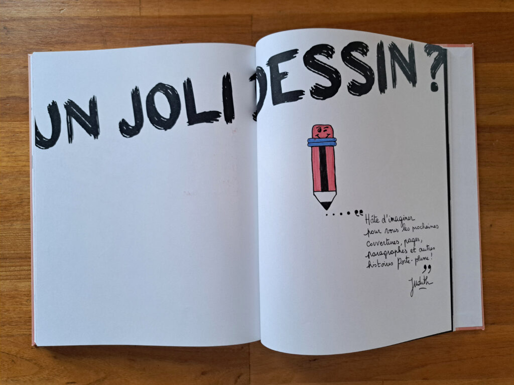 Chaque double page est différent. Des jeux de typographies évoquent tour à tour le manuscrit, l’imprimé, la littérature, des espaces de respiration invitent à écrire, des textures et couleurs rappellent l’identité graphique de Porte-plume…Notre livre d’or n’était plus un simple recueil : c’était un véritable objet éditorial, un clin d’œil à ceux que nous fabriquons avec tant de soin et nous avons pris beaucoup de plaisir à l’inventer !